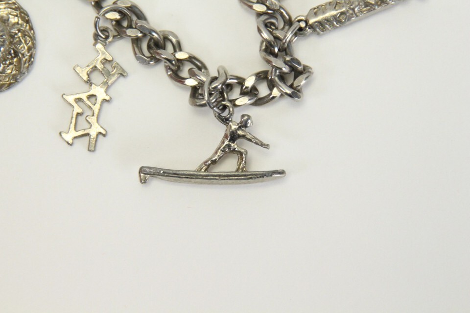 Vintage Hawaiian Souvenir Charm Bracelet TiKi Waʻa kaukahi Surfer Pineapple Hat