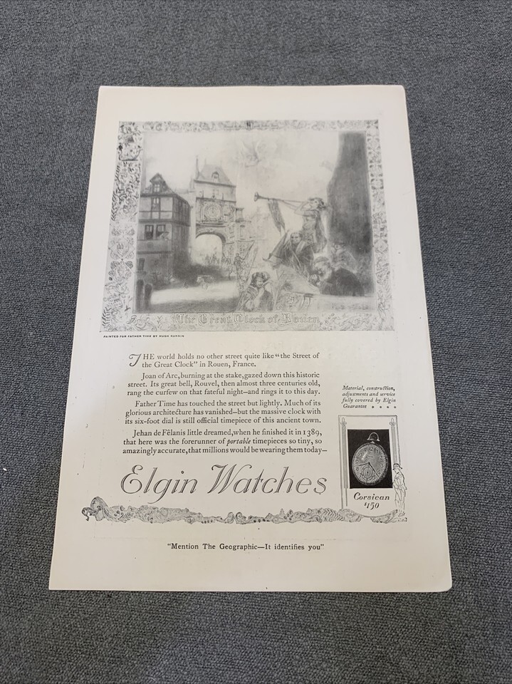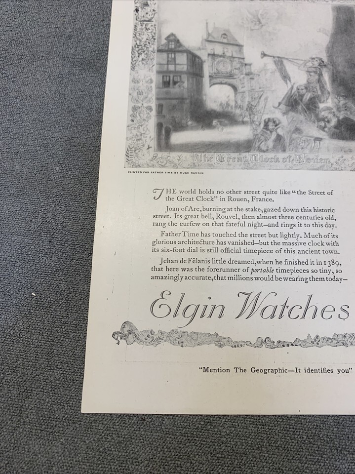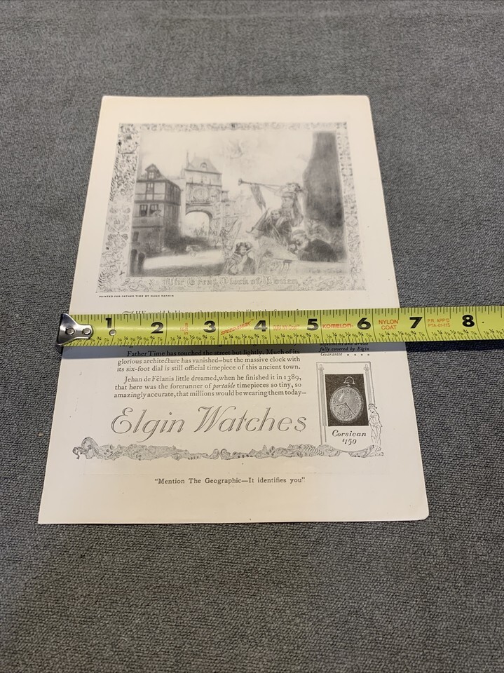 National Geographic August 1920 Elgin Watches Vintage Print Ad Great Clock KG