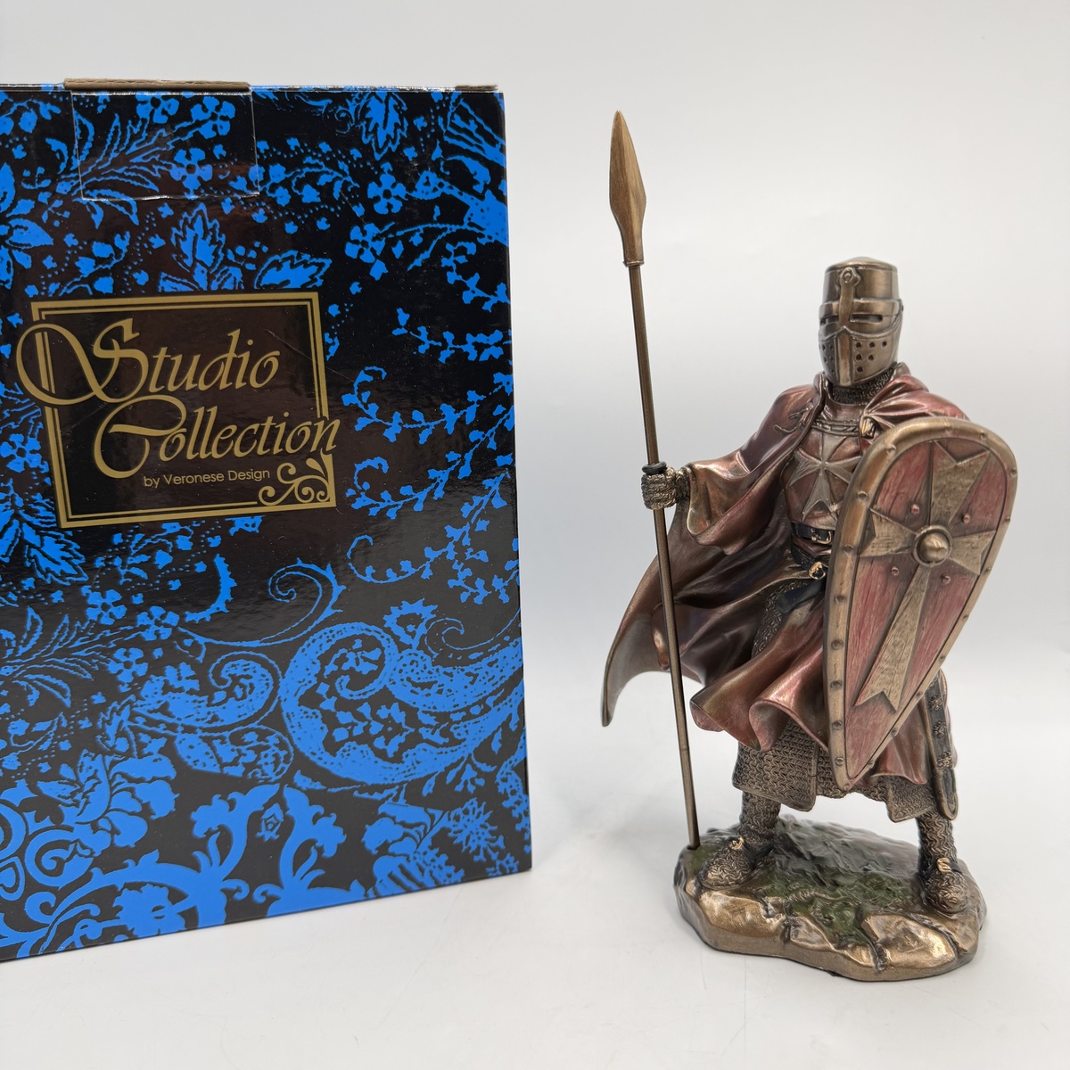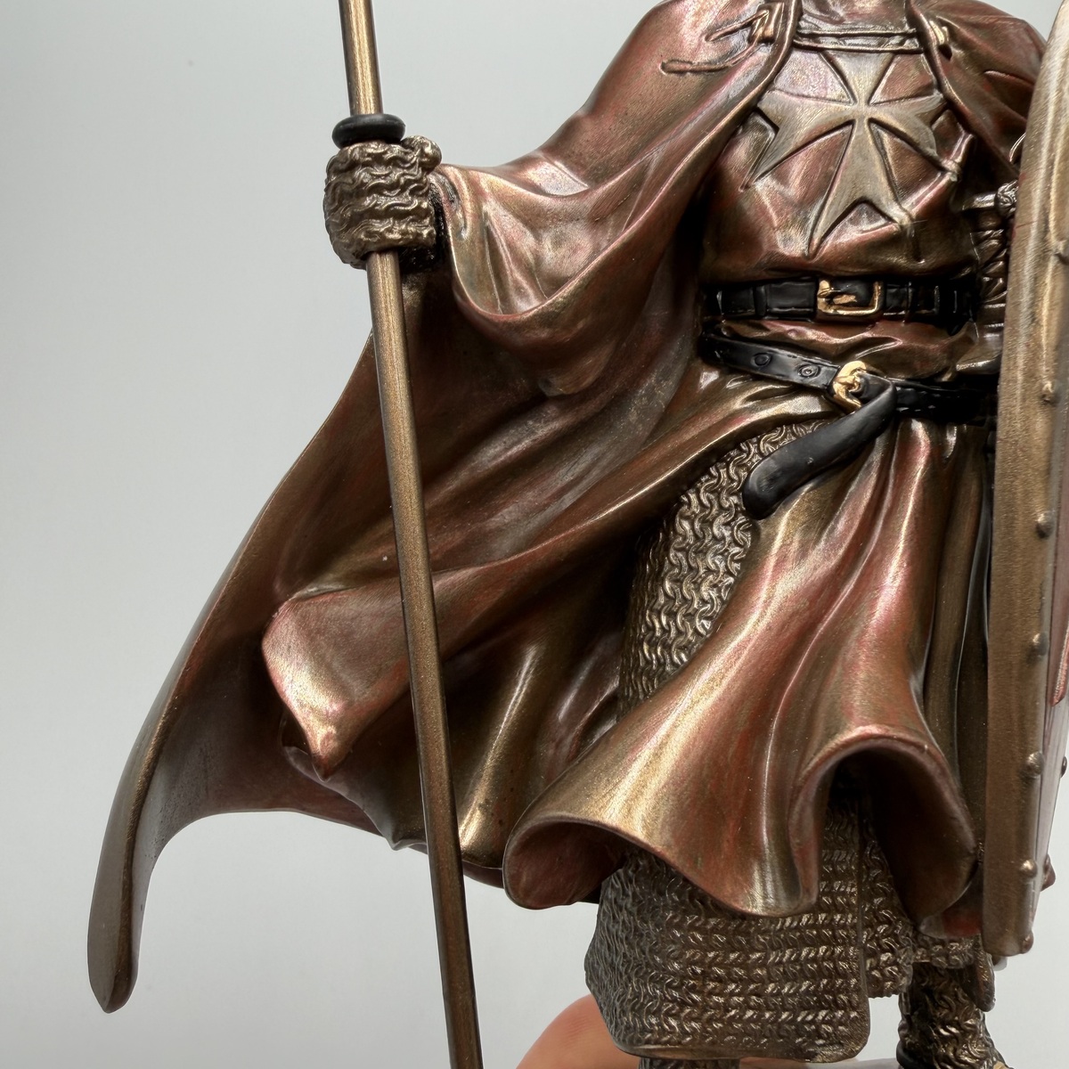 Crusader Knight with Spear Statue Bronze Finish Templar Figurine Gift Box 16cm