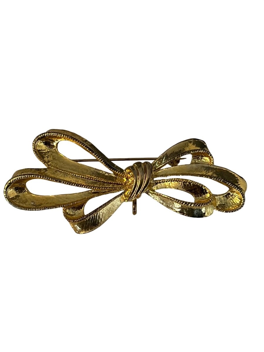 Vintage Gold Tone Bow Brooch Pin Textured and similar items