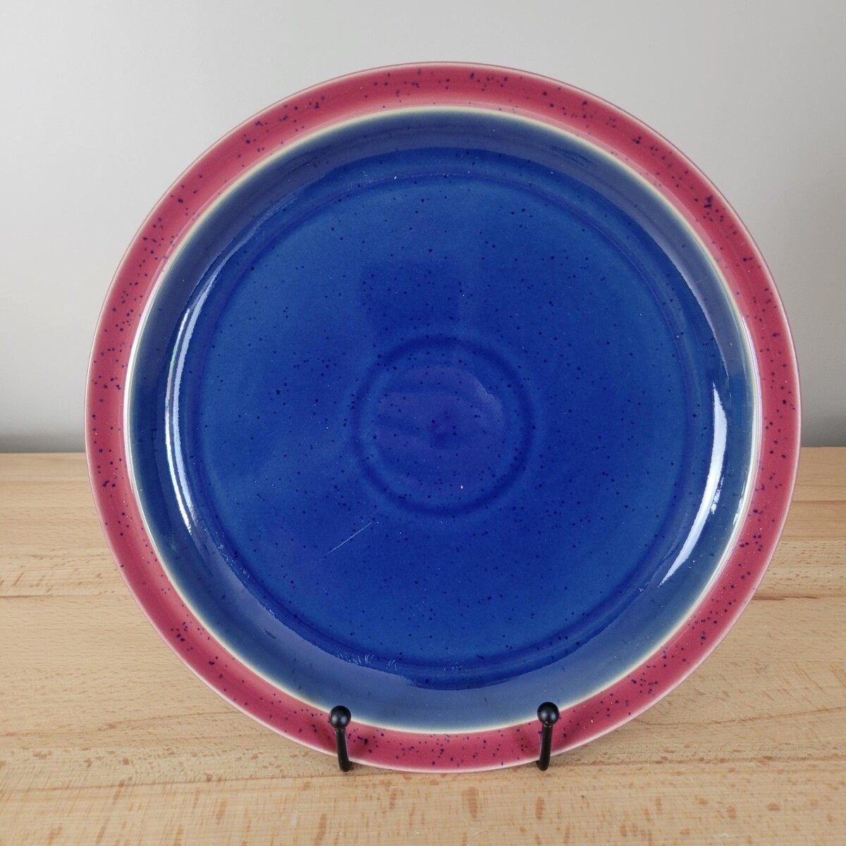 DENBY England Stoneware Blue Red Speckled Harlequin Dinner Plate 10-1/4" Rare