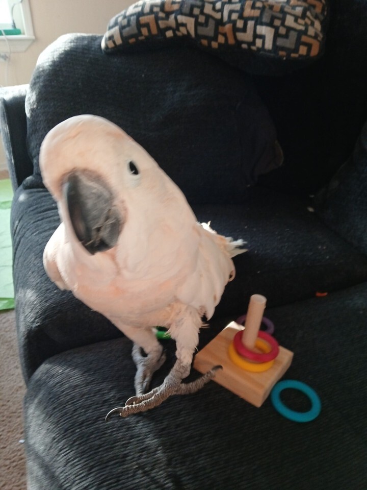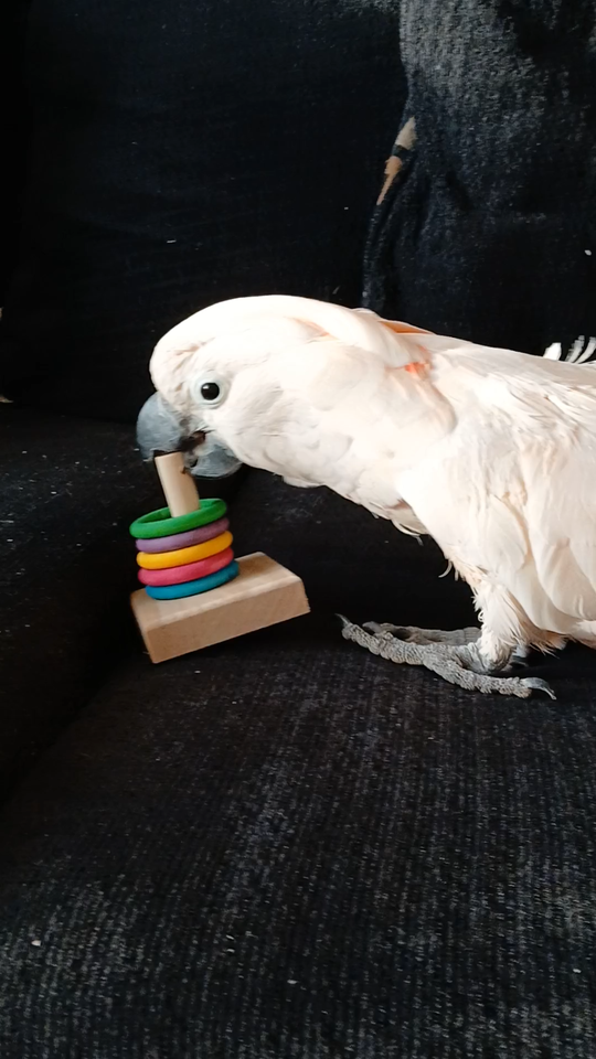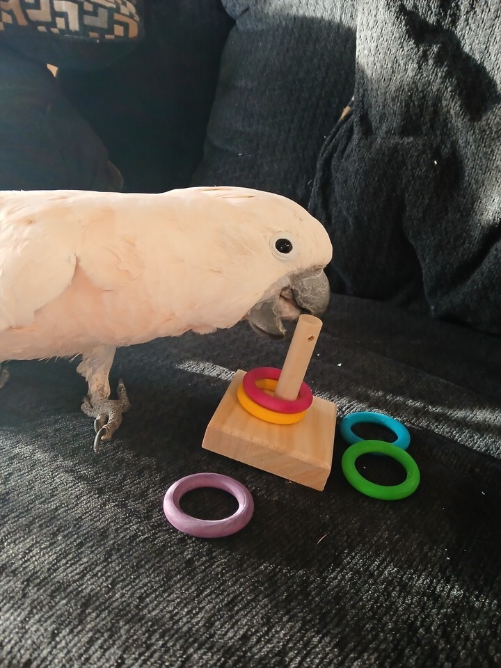 Happy Beak Toss Bonanza Training Wood Bird Toy 5 Colorful Rings & Wood Stand