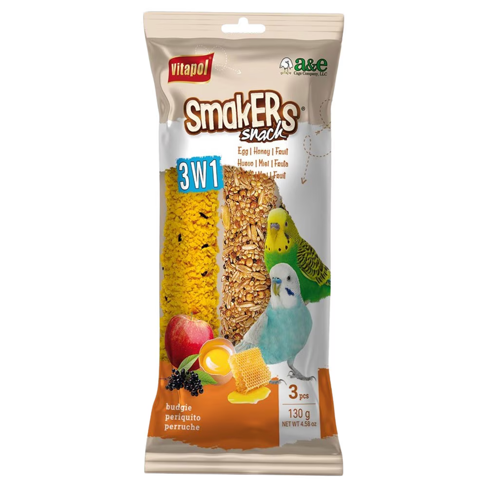 A&E Smakers Treat Stick Parakeet 3in1 Package Egg Honey Fruit High Quality