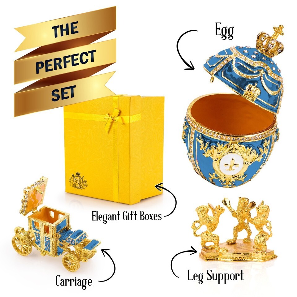 Royal Imperial Aqua Easter Egg Replica: Extra Large 6.6 inch + Carriage by Vtry