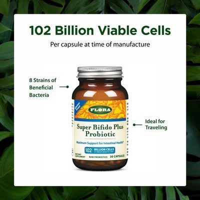Expiration Date of 6/2026 ? Restorative for Sensitive Systems: Uniquely formulated for adult digestive systems (19+), welcome the dynamic difference in our exceptional blend of probiotic strains with 102 billion CFU, retaining an amazing 61 billion at expiration. Gut flora get a comforting boost of wellness with Bifidobacterium and Lactobacillus. Bolster immune support and regularity with intestinal fortifiers that nourish your whole system. ? Keep Things Moving: Even occasional irregularity can put a damper on the whole day, leading to sluggishness, poor sleep, and not feeling like yourself. Proper digestion makes a big difference in every area of life. It all starts with robust gut wellness. Flora Super Bifido Plus supplies gut flora with top-quality strains to keep the stomach and intestinal tract optimally balanced to absorb, transport, and function how they should. ? Banish The Bad Guys: Superior probiotic supplements perform double duty: feed the good gut bacteria to help it flourish while impeding the bad bacteria. We?ve got both covered with a comprehensive blend of 8 colonizing strains that last longer in the body. Harmful bacteria are stopped so they don?t proliferate, while helpful flora thrive to help you feel your best all day. ? Trusted Travel Companion: Many men and women suffer from gastrointestinal issues while traveling--new foods and experiences can stir up unwanted changes. Be sure to pack your portable vegetarian capsules (no need to refrigerate + amber glass protects from light). This complete multi-strain raw formula can soothe stomach challenges as it resists acids to reach the intestinal tract efficiently at full potency. Enjoy your travels without discomfort, thanks to Flora. ? Traditional Blends for Your Well-Being: Welcome to the Flora Family. Our roots stretch back to the early 1900s when founder Dr. Otto Greither dedicated his life to creating the very best science-based natural formulas to treat a variety of needs for patients and loved ones. Word spread and his products became a heralded success. We?re thrilled to continue his caring tradition with pure formulas like Flora Super Bifido Plus Probiotic.