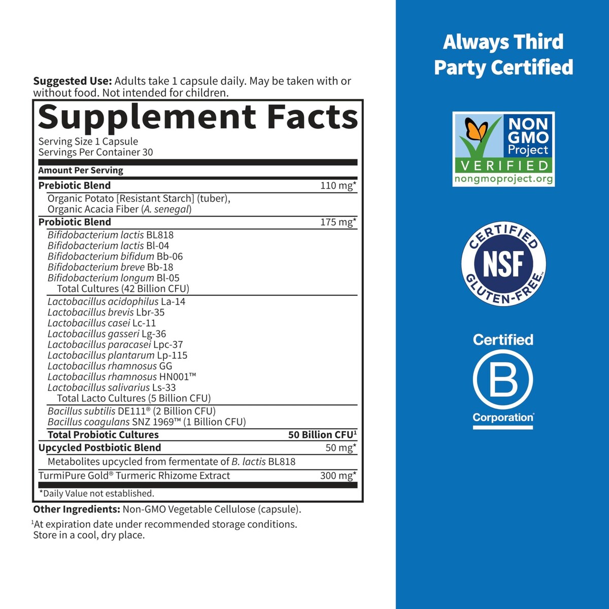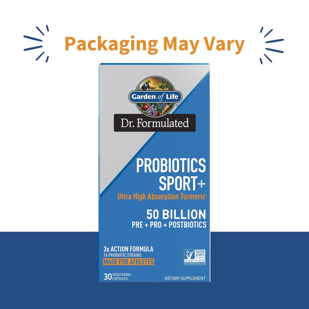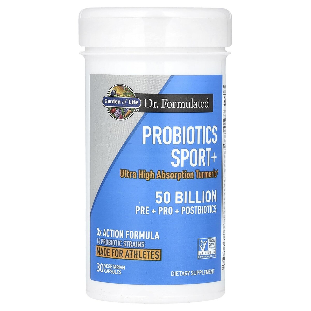 Expiration Date of 12/2026 ? TRIPLE ACTION PROBIOTIC: Our Pre, Pro and Postbiotics formula includes Clinically Studied turmeric plus Organic prebiotic fiber, exclusive postbiotics 50 Billion CFU of probiotics including L. acidophilus; Sport+ is the choice for the athlete in you ? PRE, PRO POSTBIOTICS: One capsule delivers 50 Billion CFU from 15 strains including L. acidophilus, L. rhamnosus and Clinically Studied B. subtilis DE111 B. coagulans SNZ 1969?plus 110mg of Organic Prebiotic Fiber and an upcycled Postbiotic blend ? HIGH ABSORPTION TURMERIC SUPPLEMENT: Our shelf stable probiotic formula also delivers 300mg of TurmiPure Gold Turmeric Rhizome Extract, a patented and Clinically Studied form of ultra-high absorption turmeric with plant-based antioxidant flavonoids ? ATHLETES, THIS ONE'S FOR YOU: Not only is this triple action formula made to support the growth of good gut bacteria, it is personalized for athletes those looking to recover from athletic activity?delivered in convenient one a day plant based capsules ? FUEL YOUR INNER ATHLETE: Sport Plus is Third-Party Certified Non GMO Gluten Free?no dairy or soy; The Garden of Life SPORT line features pre- and post-workout powders, probiotics, plant based and whey protein powders