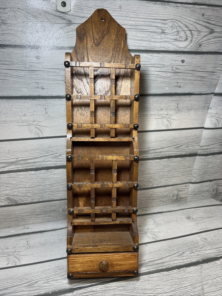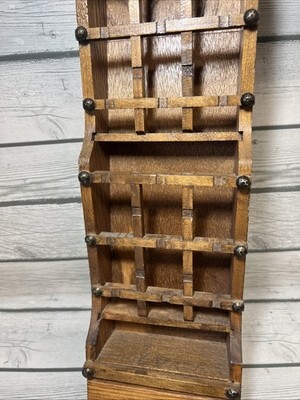 Vintage Mid -Century Holmar Wood Mail Letter Organizing Rack With Stamp Drawer
