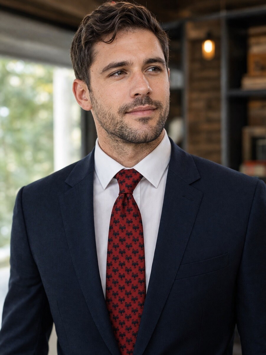 Murano Red Tie Black Scorpion Pattern Textured Designer Necktie Classic Italian Style