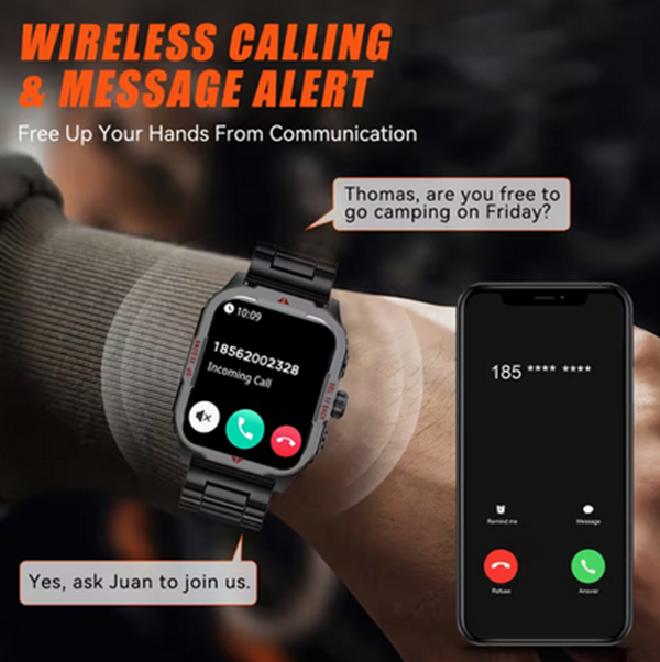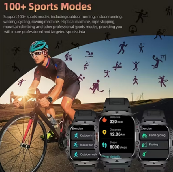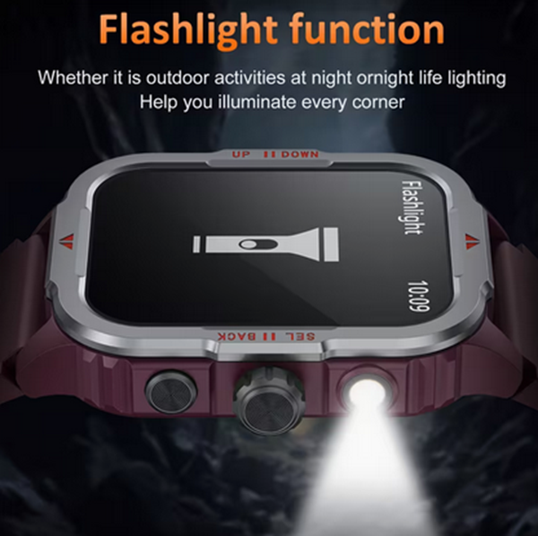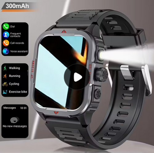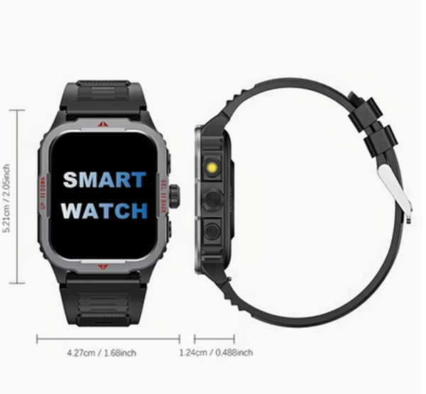 Military Smartwatch 55 mm Black Case Black Silicone Watch for Men