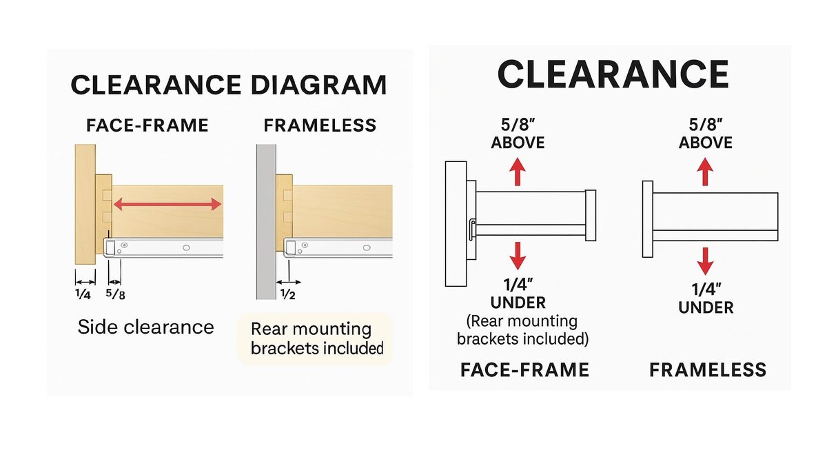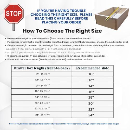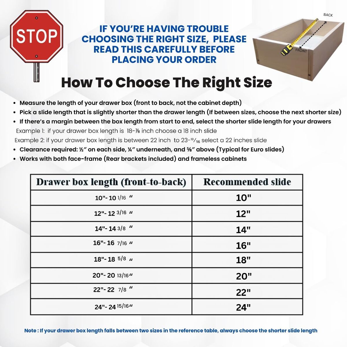 24 Inch Euro Slides, Pack of 2, for Face-Frame and Frameless Cabinets. 75lbs Cap