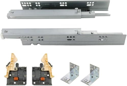 Product description: Transform your cabinetry with these premium undermount drawer slides that combine functionality with smooth operation. These full extension drawer rails feature a sophisticated soft-close mechanism that prevents slamming and ensures quiet, gentle closure every time. Each pair of slides is crafted from durable cold-rolled steel and boasts an impressive 100-pound weight capacity, making them ideal for heavy-duty kitchen, bathroom, or office storage solutions. The 2-way adjustment system allows for precise alignment, while the integrated locking device provides secure drawer retention. Complete with rear mounting brackets for stable installation, these slides offer professional-grade performance. The full extension design enables complete access to drawer contents, maximizing your storage space efficiency. Perfect for both new installations and cabinet upgrades, these drawer slides deliver reliable, smooth operation that enhances the functionality of your furniture.