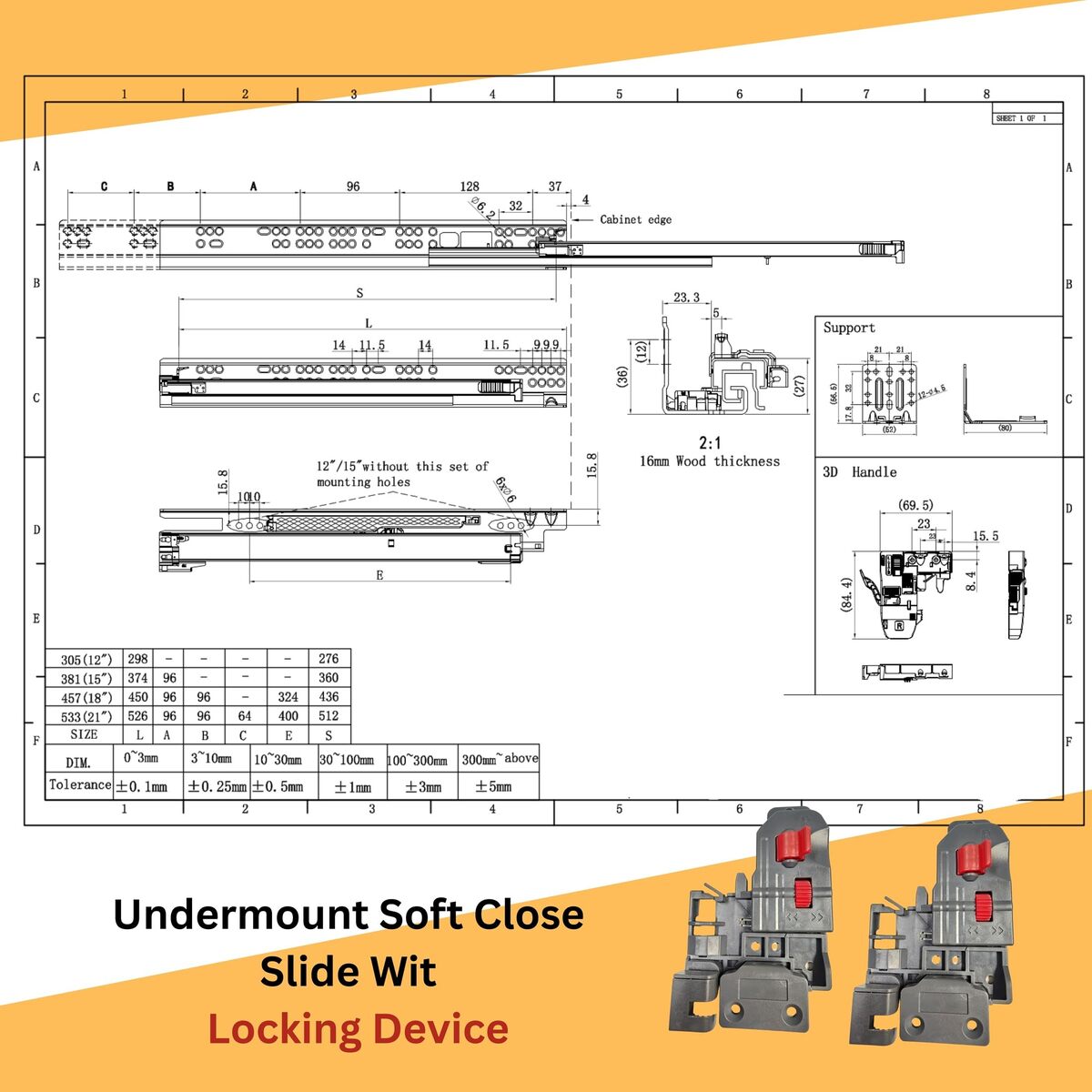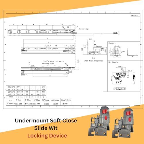 Transform your cabinetry with these premium undermount drawer slides engineered for superior performance and reliability. Featuring full extension capability, these concealed guides offer smooth, soft-close action and impressive 150-pound load capacity. The 6-way adjustability ensures precise alignment for a perfect fit, while the integrated locking device adds security. Crafted from durable cold rolled steel, these KCMA approved slides deliver professional-grade quality for your cabinet and furniture projects. Perfect for kitchen cabinets, wardrobes, and custom furniture pieces where seamless operation and hidden hardware are desired. The undermount design creates a clean look while maximizing drawer space. Installation is straightforward with multiple adjustment points for fine-tuning drawer positioning. These slides combine functionality with refined operation, making them an excellent choice for both new installations and cabinet upgrades.