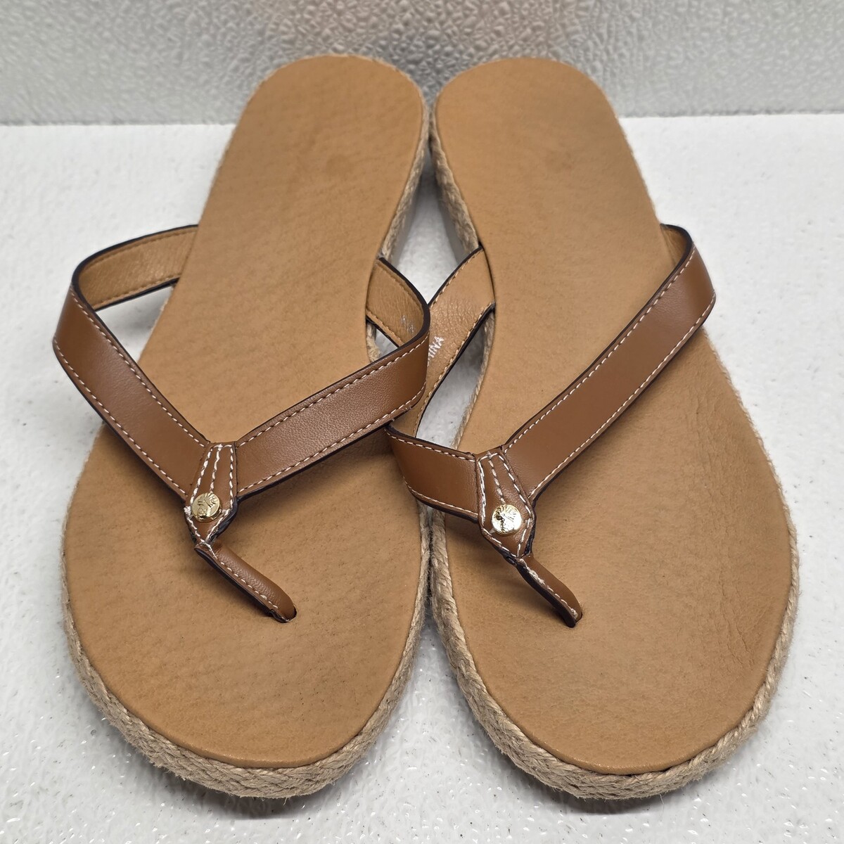 Tommy Bahama Thomas Tan Beige Brown Espadrille Rope Slip On Flip Flop Sandal Womens 8.5. Images show actual shoes that will ship.