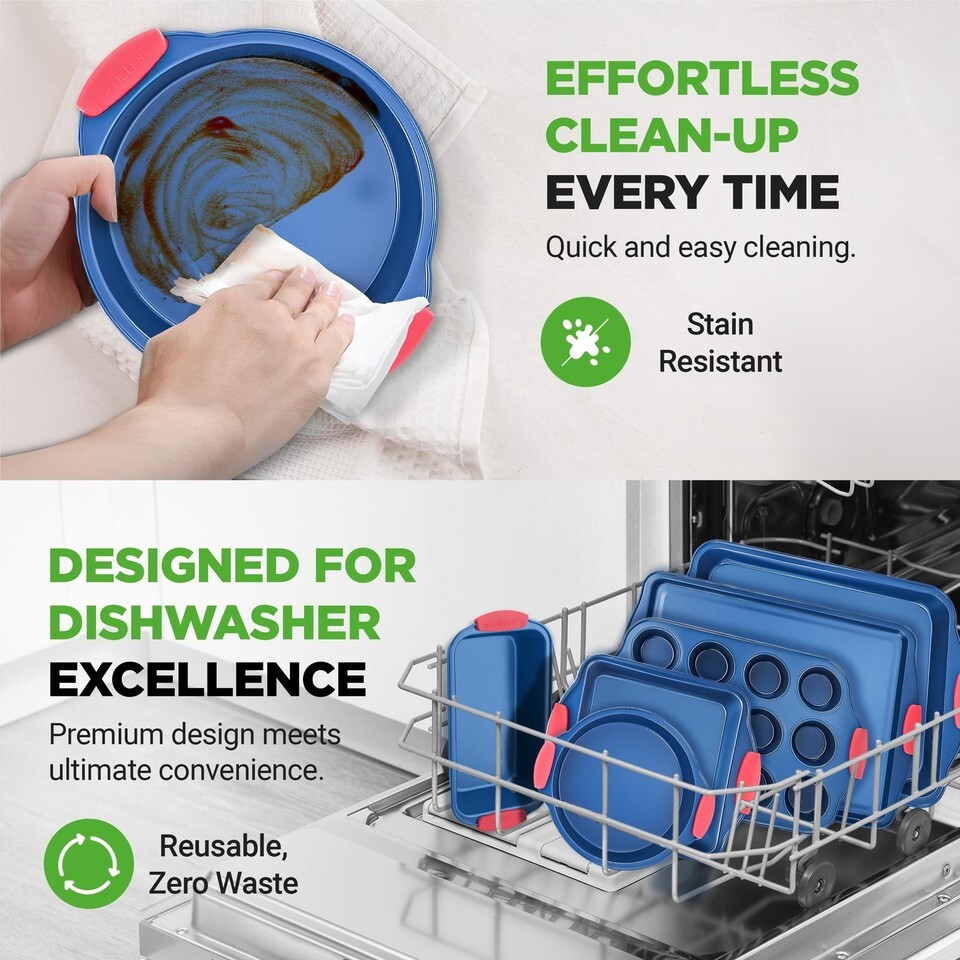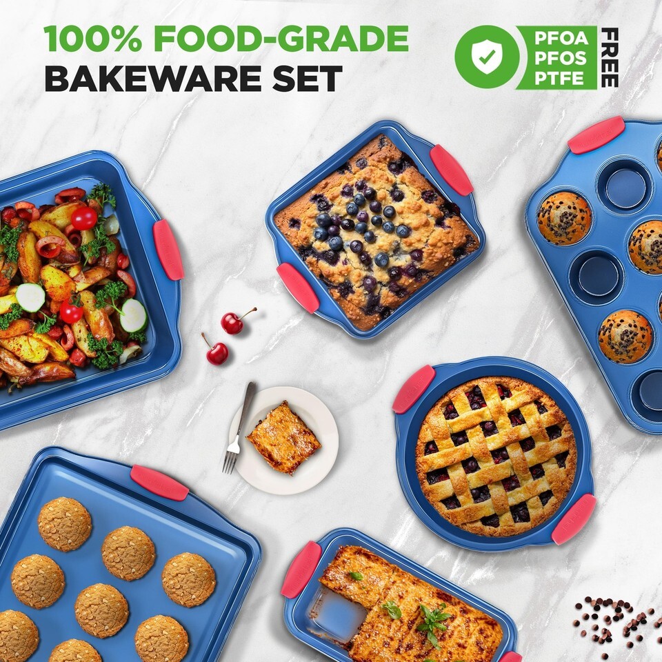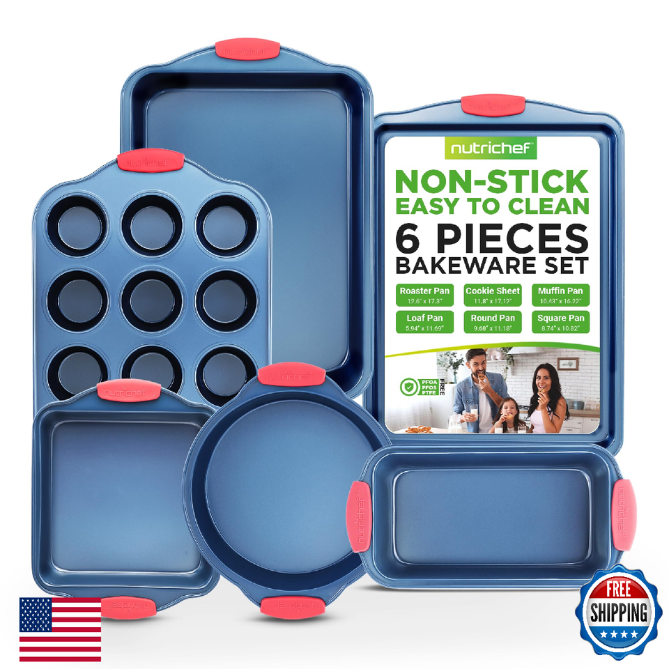 NutriChef 6-Pc Nonstick Bakeware Set Carbon Steel Pans w/ Red Silicone Handles