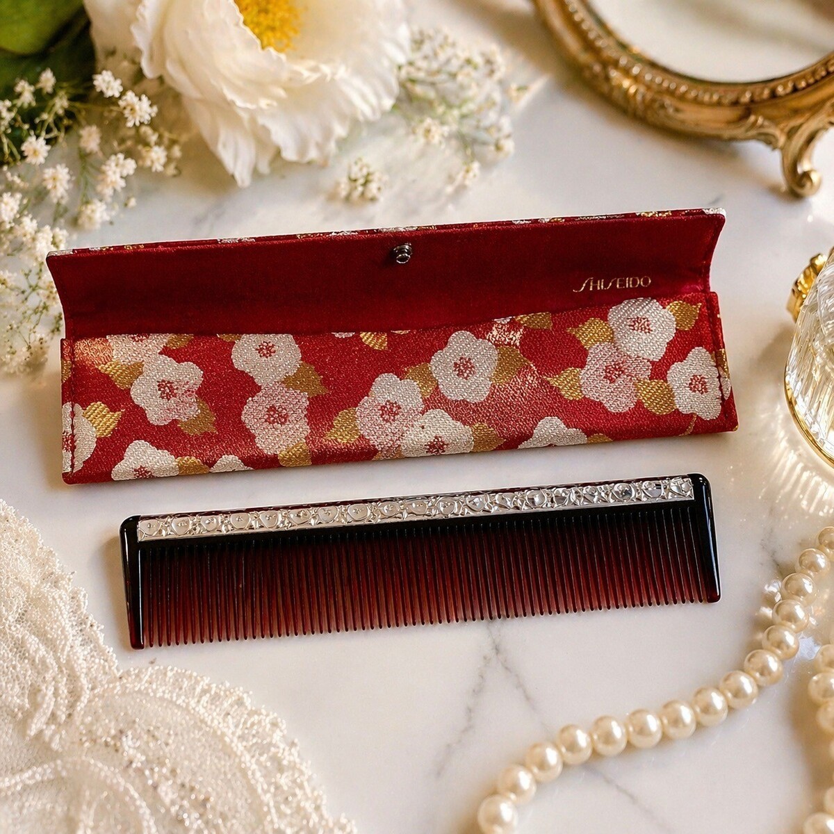 Vintage Shiseido Comb Set Floral Case Red and similar items