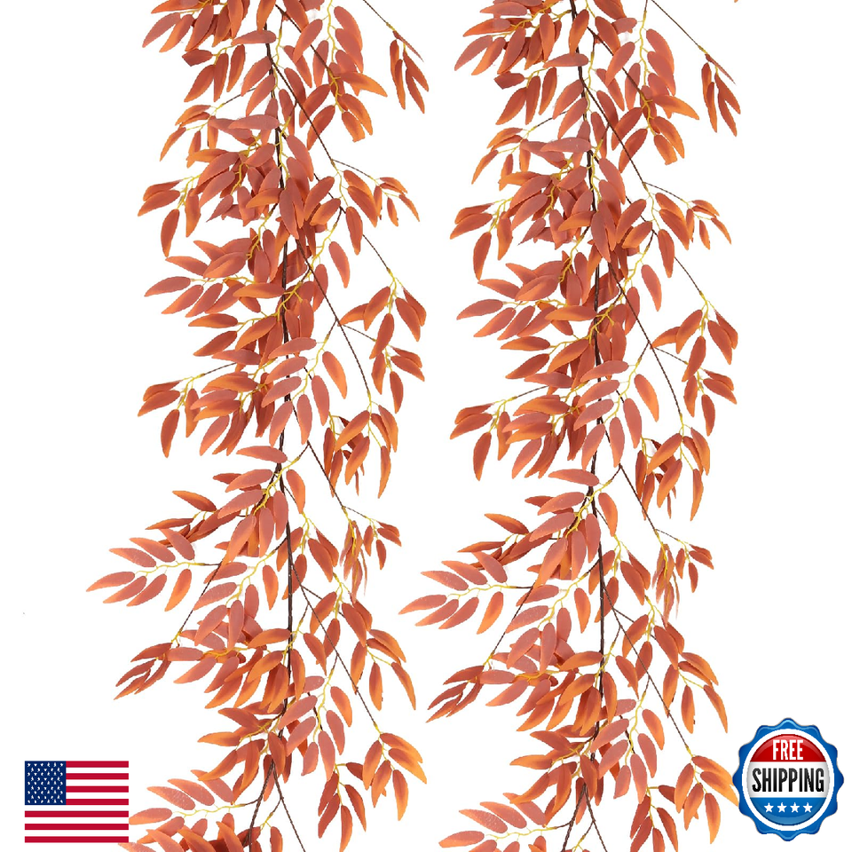RECUTMS 2 Pcs 5.7Ft Artificial Fall Hanging Willow Leaves Vine Garland Fake
