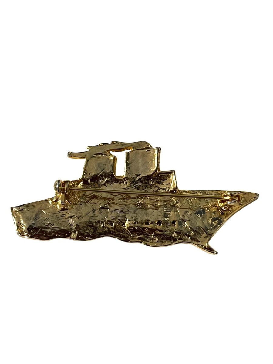 Vintage Rhinestone Cruise Ship Brooch Gold and 24 similar items
