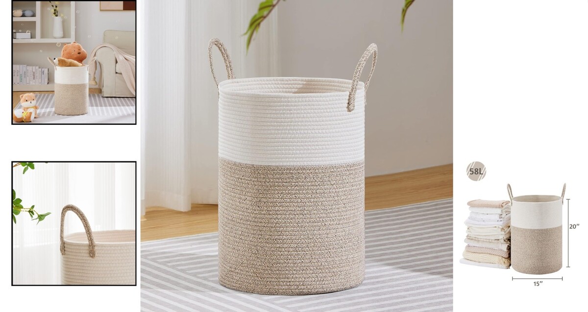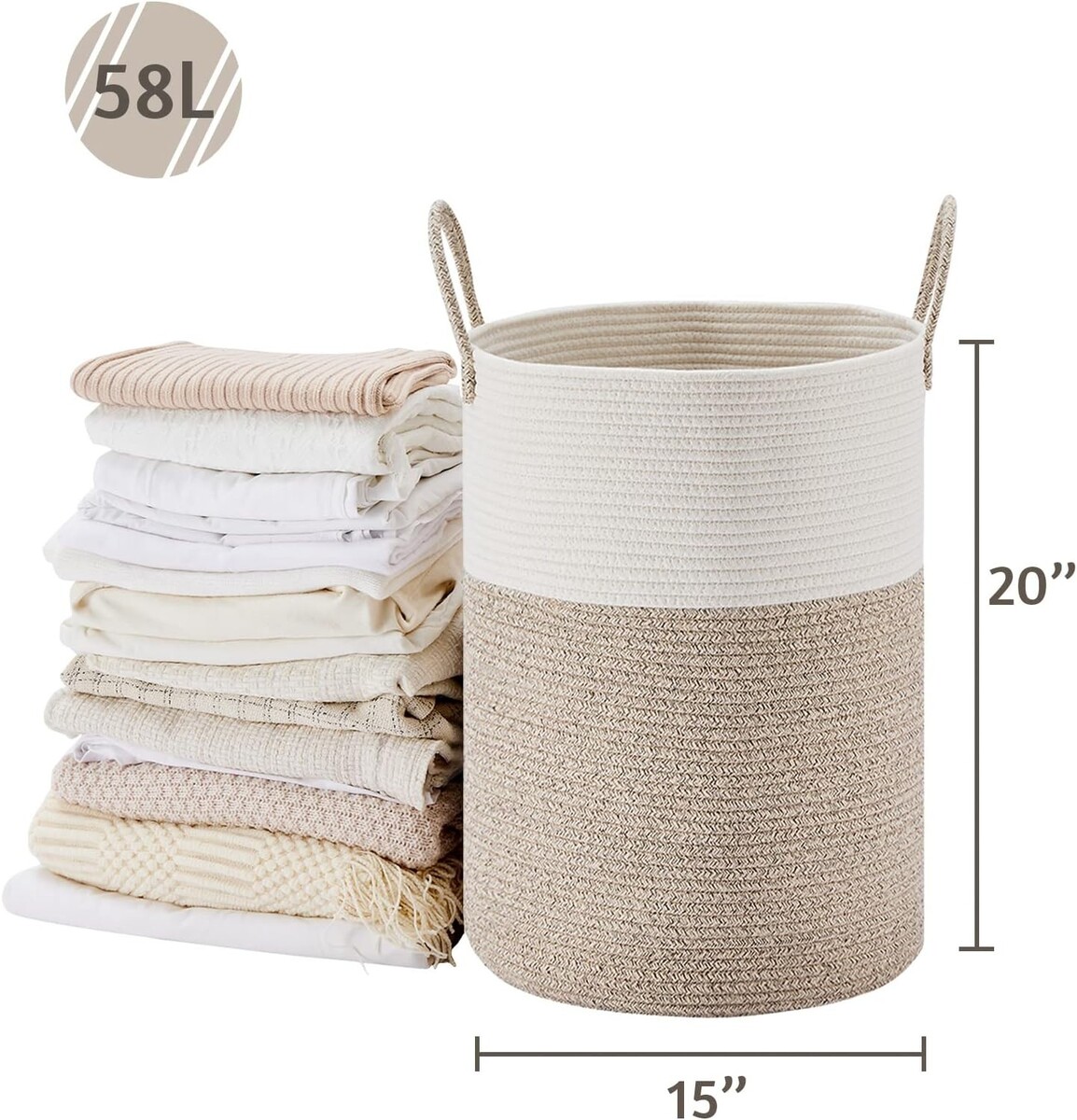 Durable Tall Laundry Basket - 58L Cotton Rope for Organizing Home Essentials