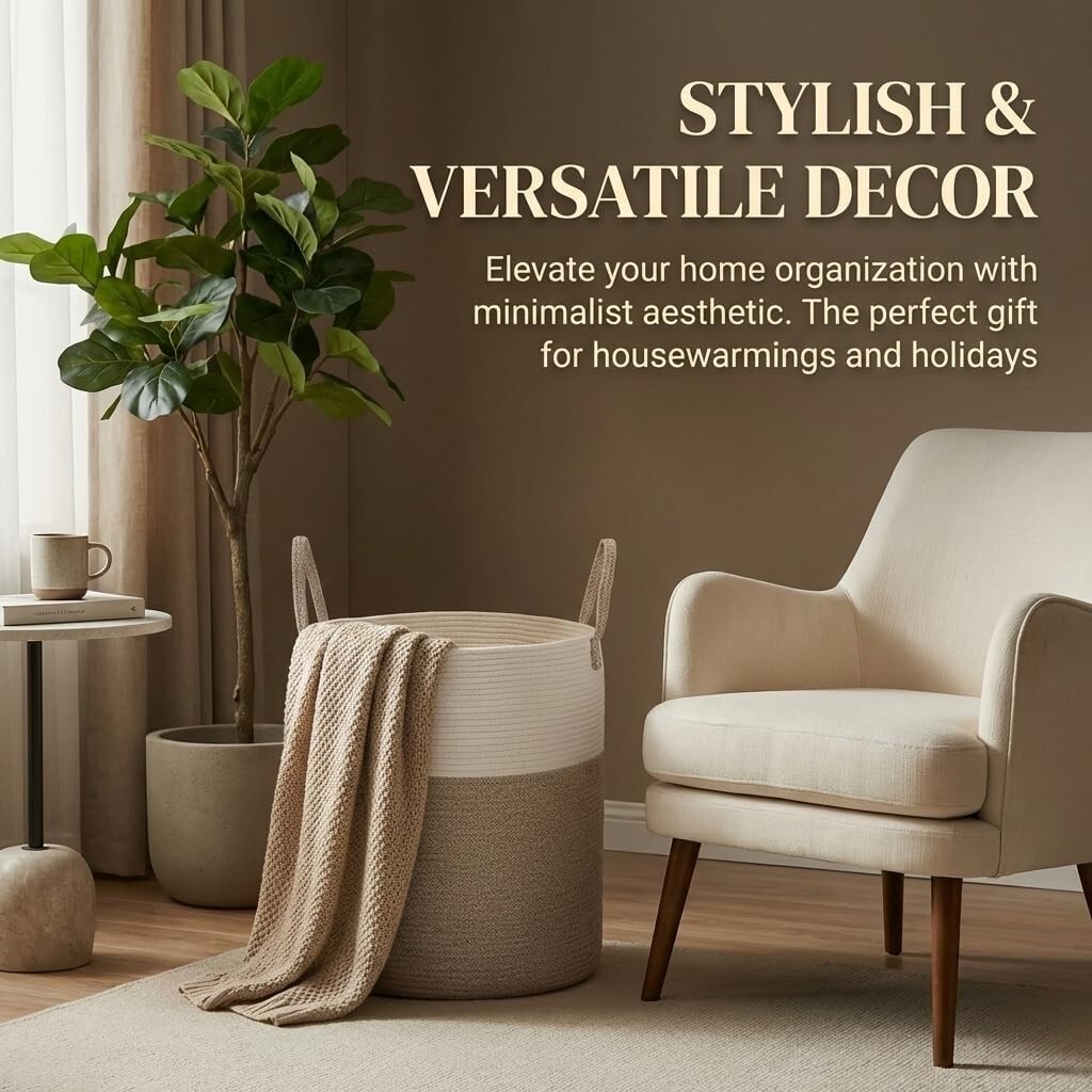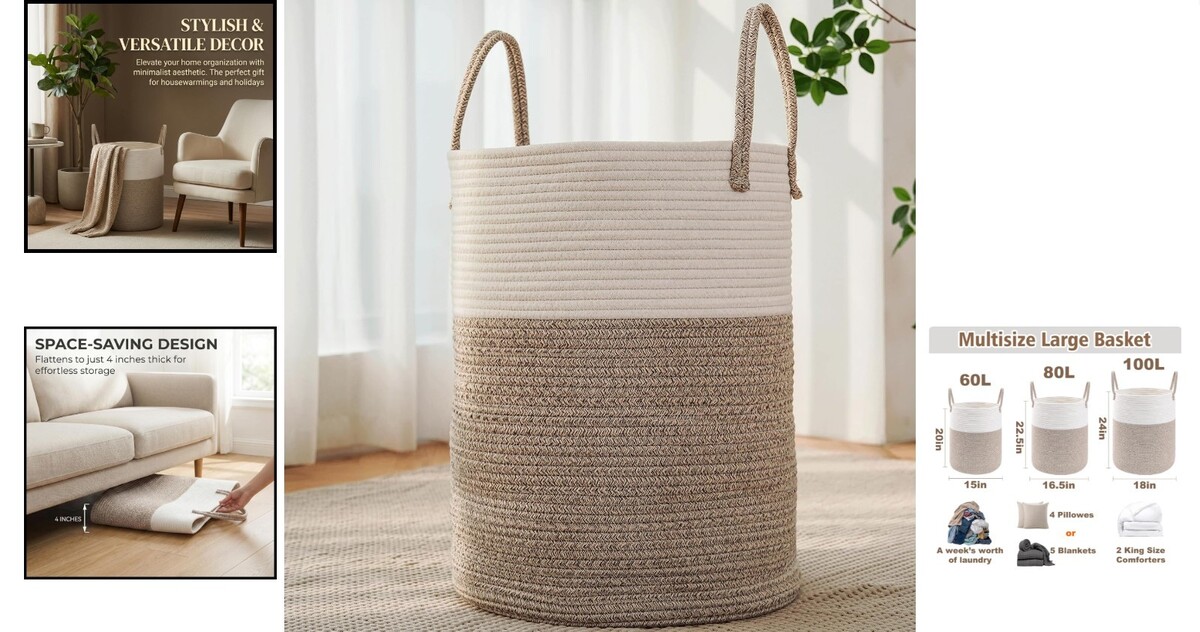 Stylish 60L Cotton Rope Laundry Hamper - Perfect for Toys, Clothes & Blankets