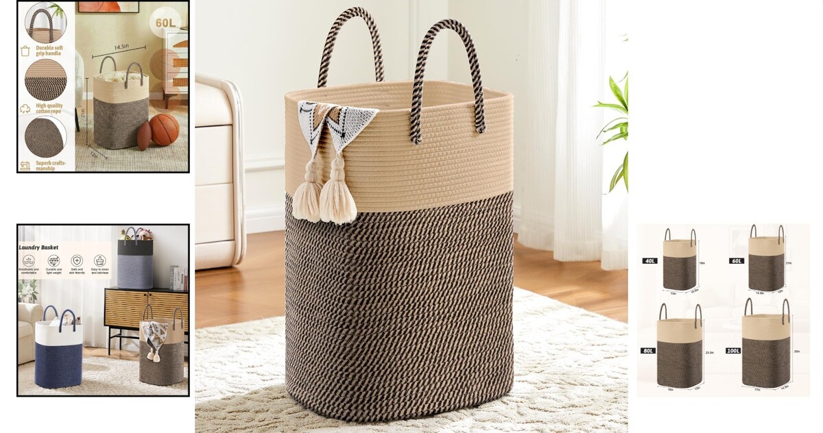 Stylish 60L Cotton Rope Laundry Hamper for and similar items