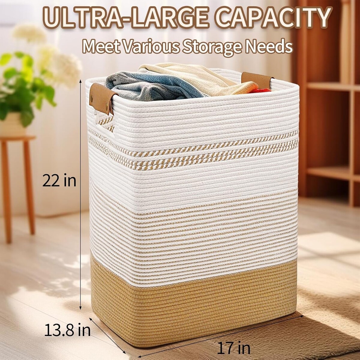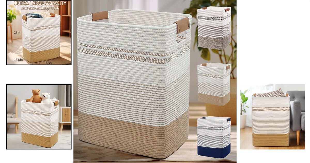 Multi-Functional 85L Jute Laundry Basket with Leather Handles for Modern Living