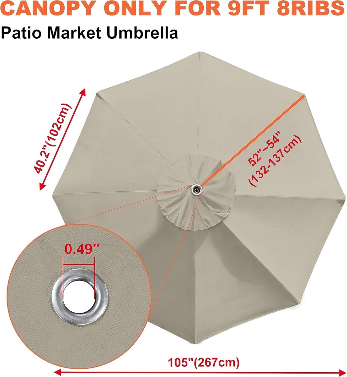 Elegant 9ft Beige Replacement Canopy for 8-Rib Patio Umbrellas ? UV Protection
