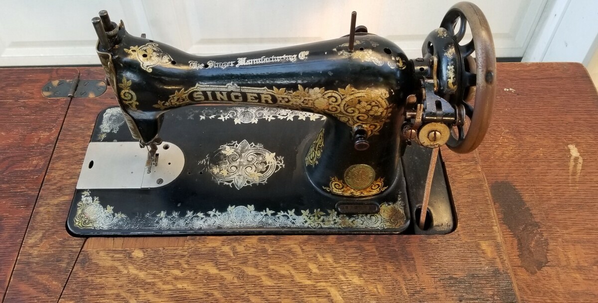 Antique Manual Pedal Singer Sewing Machine on Cast Iron Table Stand