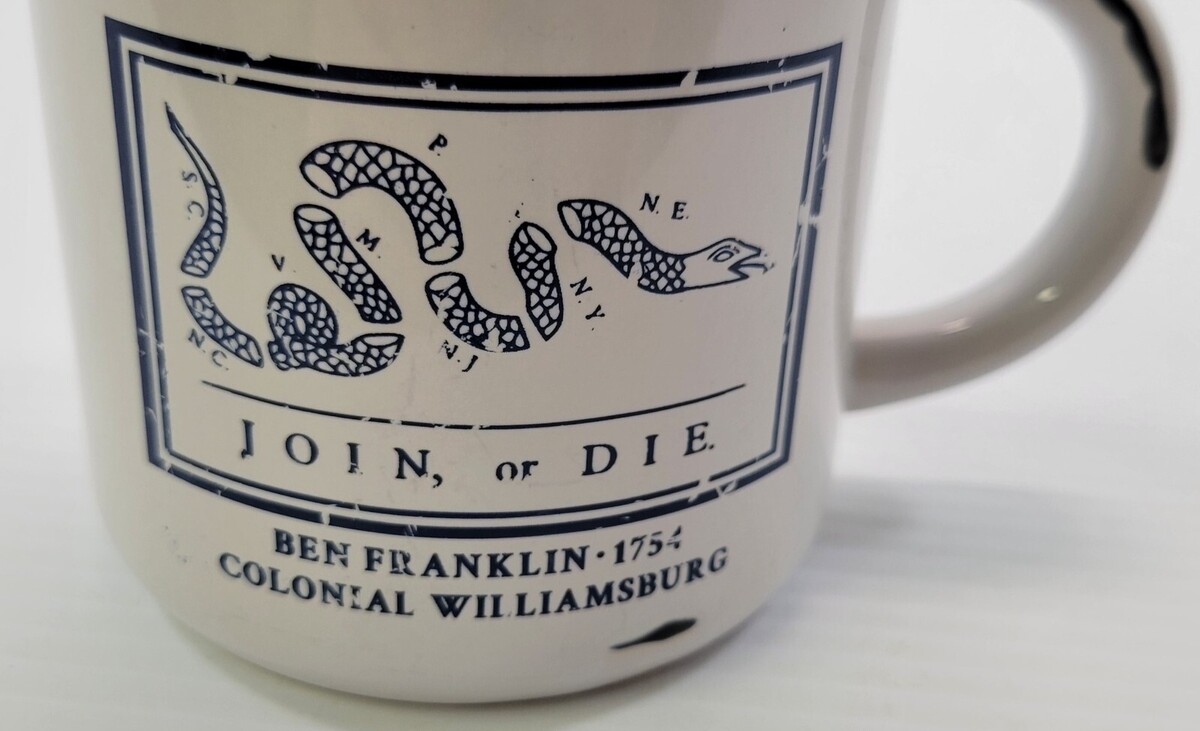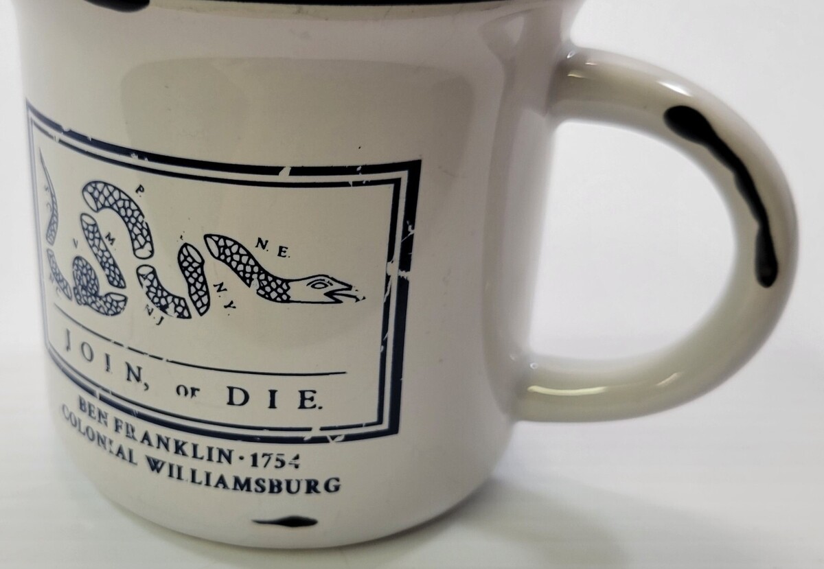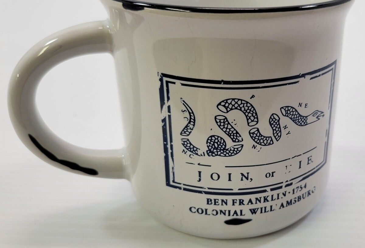 C) Colonial Williamsburg Ben Franklin Join or Die Ceramic Coffee Tea Mug