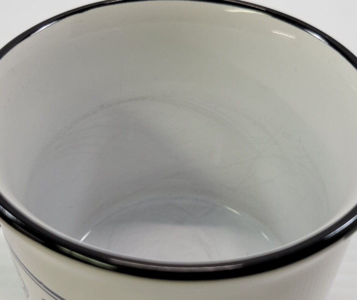Mug has a factory distressed look along with some actual fading due to use and age. There is some inner marks/stains from spoon stirring but no chips or cracks.