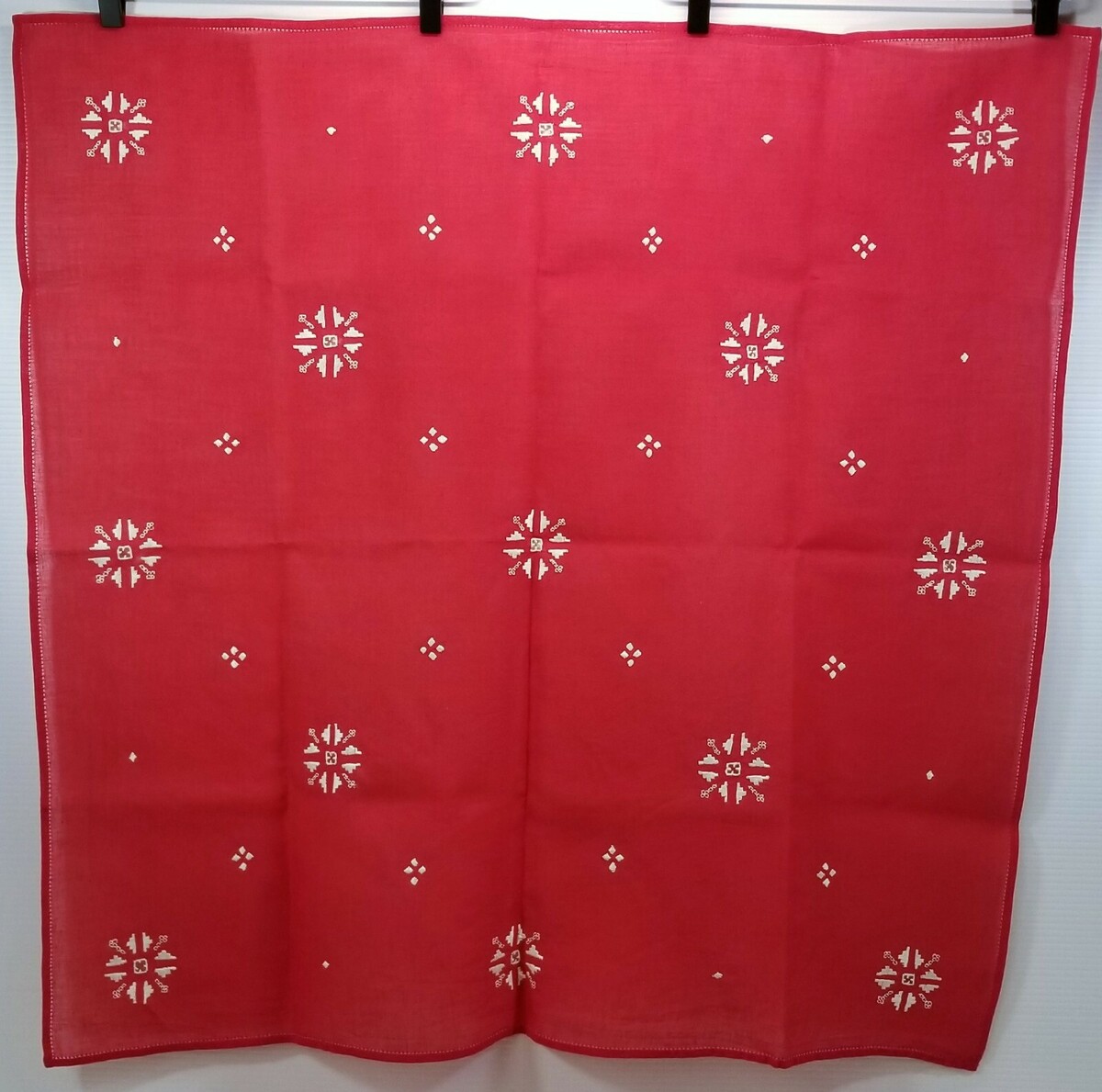 Tablecloth measures about 32-1/2" x 32-1/2"
