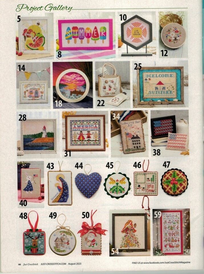 April 2022 - 24 Projects Spring Has Sprung, June 2022 - 18 Designs - Welcome to my Garden, December 2022 - 27 Designs - Festive Stitching, August 2023 - 23 Projects - 40 Year Annivesary, October 2023 - 26 Projects Fall Patterns