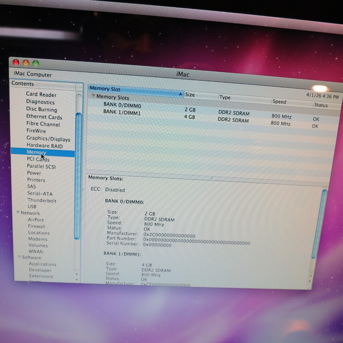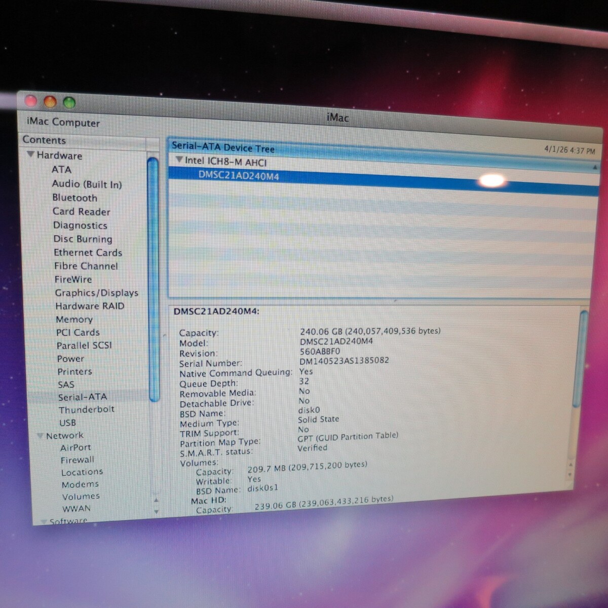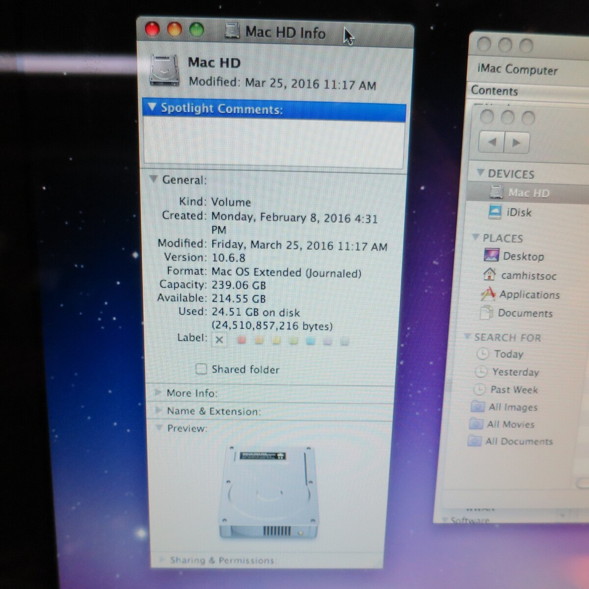 2008 20” Apple iMac A1224 2.66GHz Core 2 Duo, 6GB RAM, 240GB HD, OSX 10.6.8 03