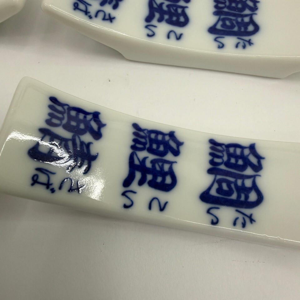 Lot of 4 White & Blue Porcelain Chopstick/Utensil Rests w/ Chinese Characters
