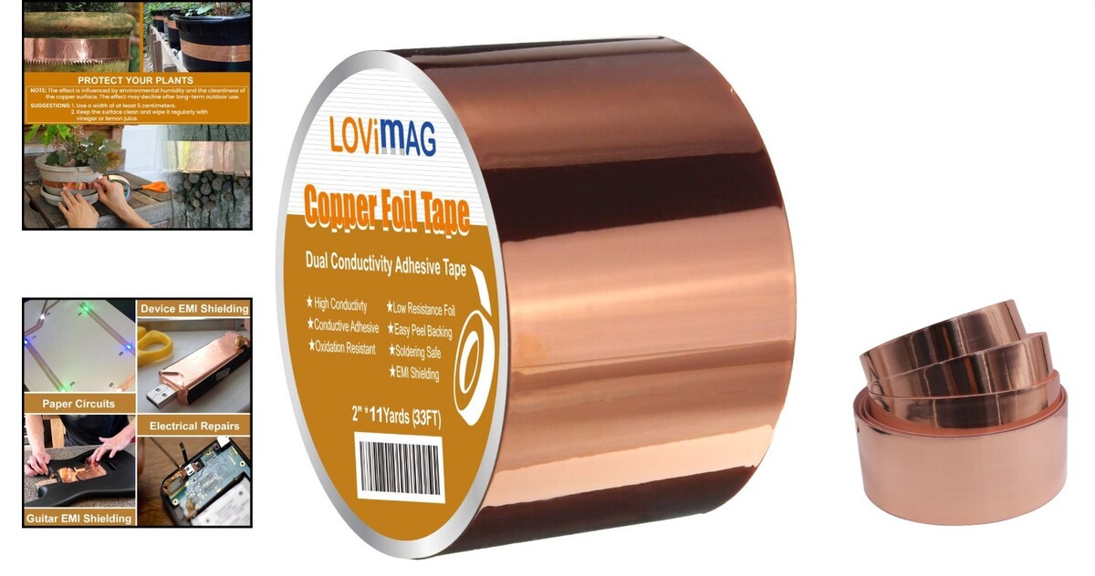Double-Sided Copper Foil Tape 2 Inch x 33 FT - Crafts, EMI Shielding, Grounding