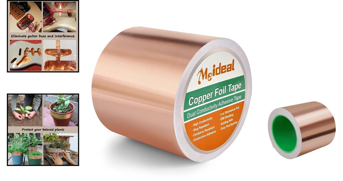 Copper Conductive Foil Tape 4" x 66 FT for Guitars & Crafts - Waterproof