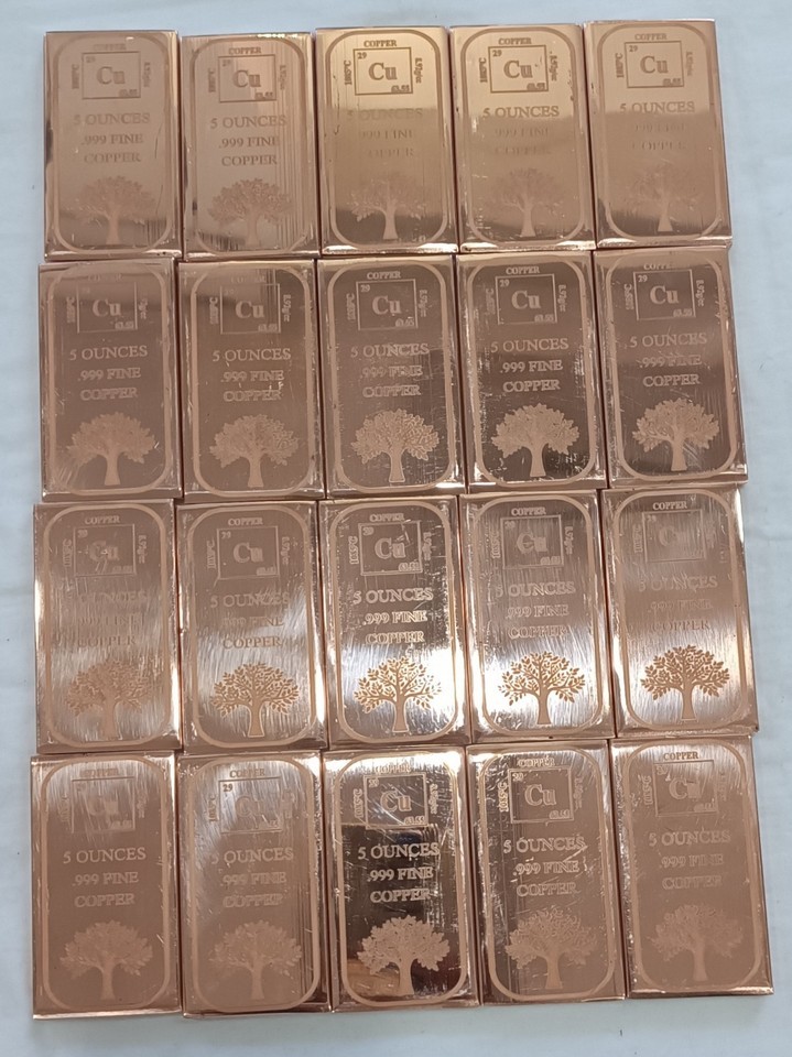 .999 Fine Copper Bullion Bar, 5 oz x 20 Pieces, Pure Polished Copper 2026- sh...