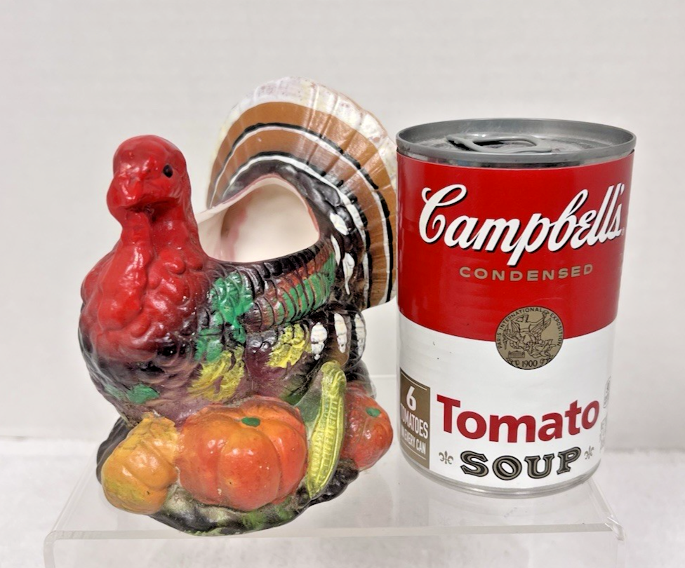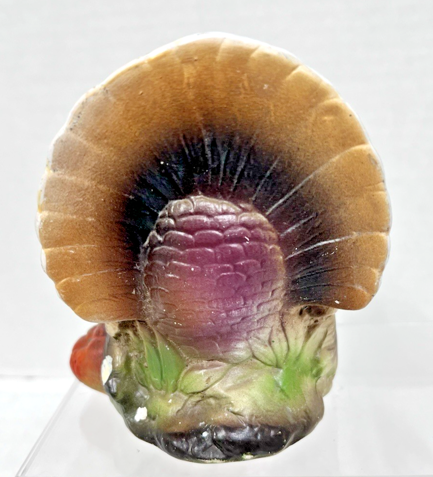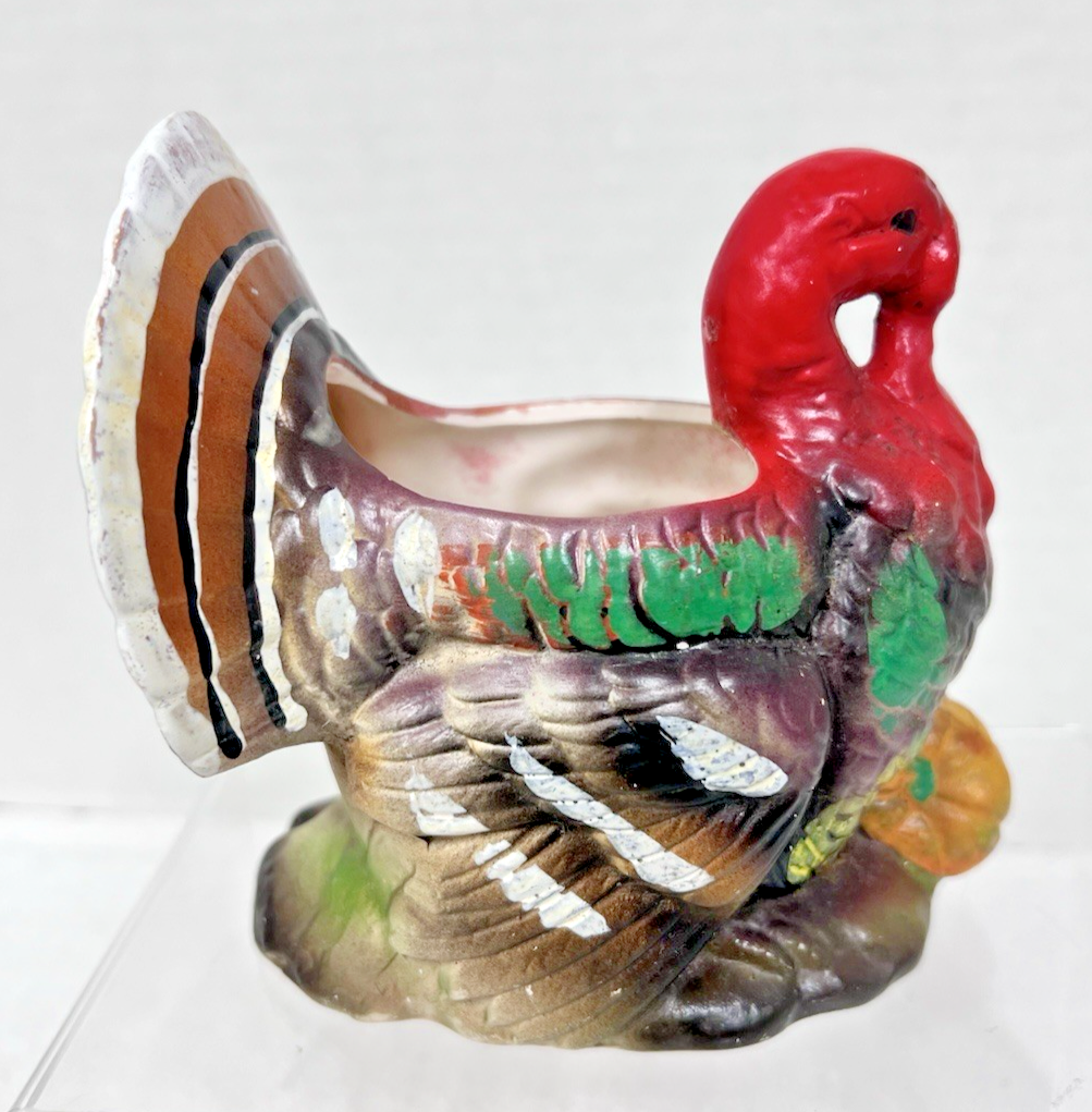 Vintage Turkey Thanksgiving Planter Flower Holder w Pumpkins Corn RB Japan 4.5 Tall (tail) about 3 3/4 inches wide