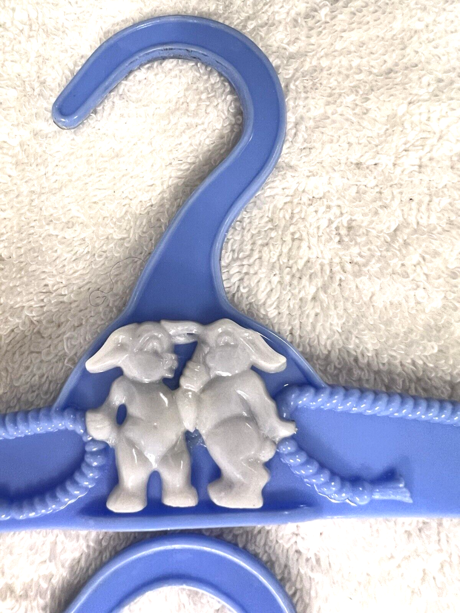Three Vintage ACME Hard Plastic Children’s Hangers Blue w Rope Critter Design