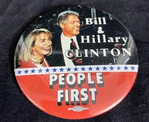 Bill & Hillary Clinton People First Presidential Election Button Pin KG