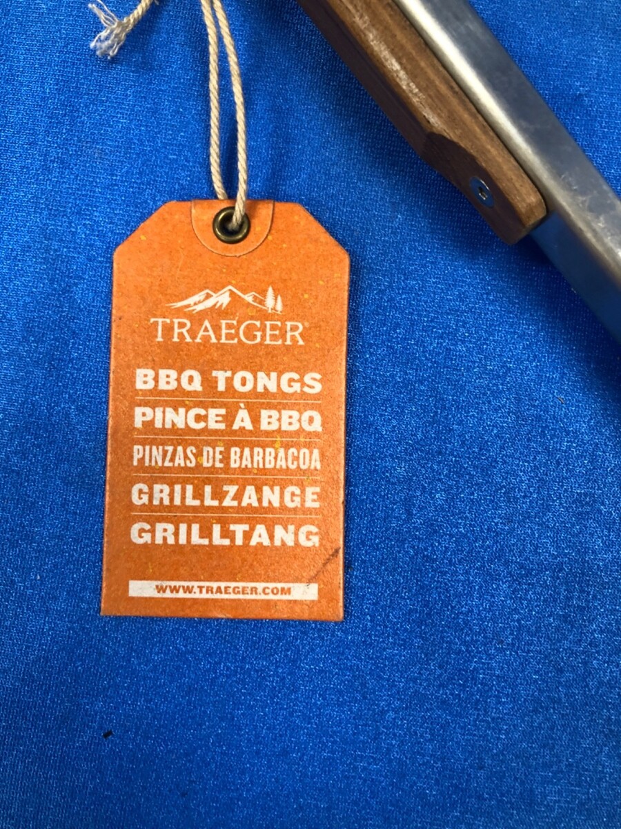 Traeger 14.5 in BBQ Grill Grilling Tongs Silver Brown Handle New, Open Box