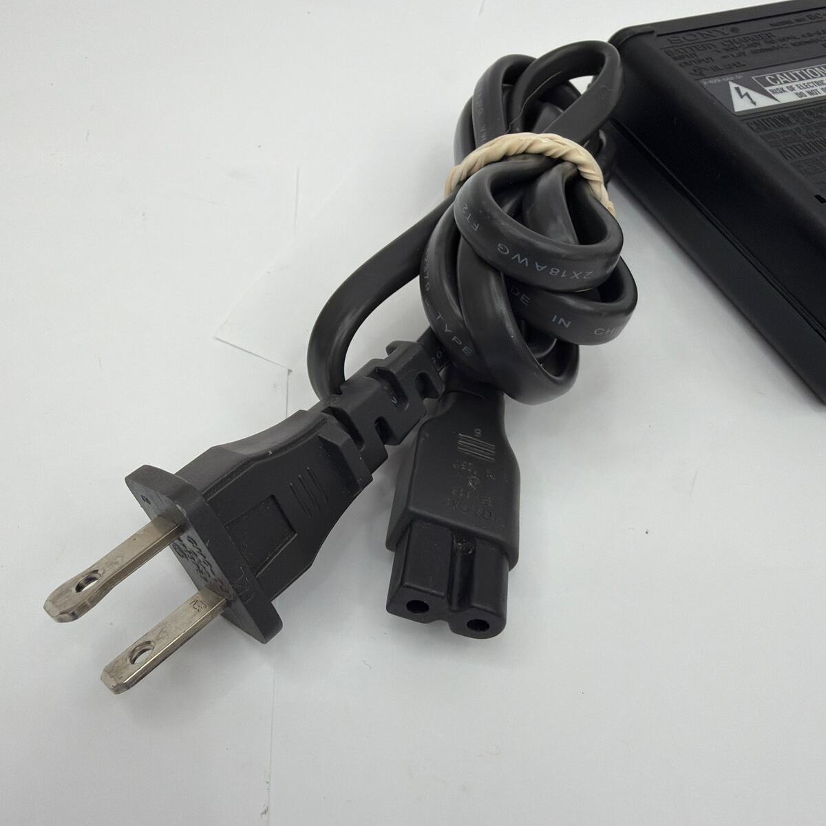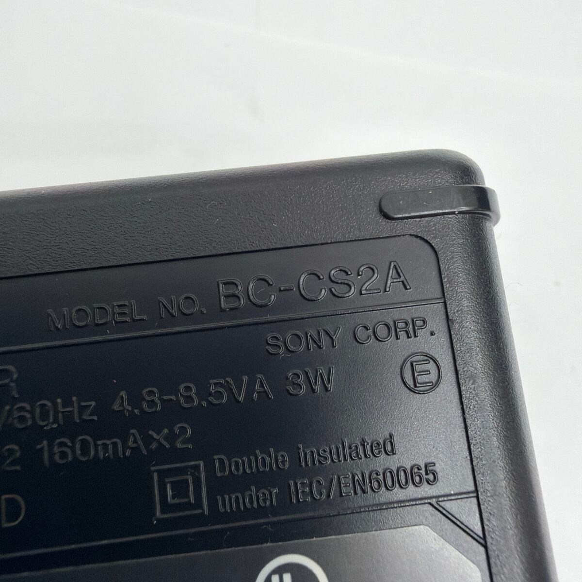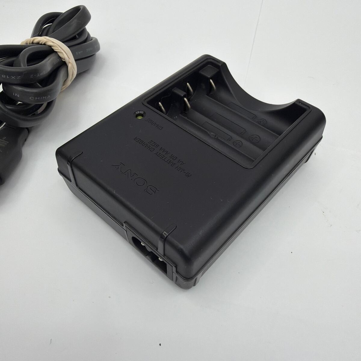 Sony BC-CS2A Ni-MH battery charger for rechargeable AA/AAA batteries. Includes charger and power cord; batteries not included. Charge indicator light turns on when compatible rechargeable batteries are inserted; no further testing performed. Pre-owned with light cosmetic wear that may include minor scuffs.