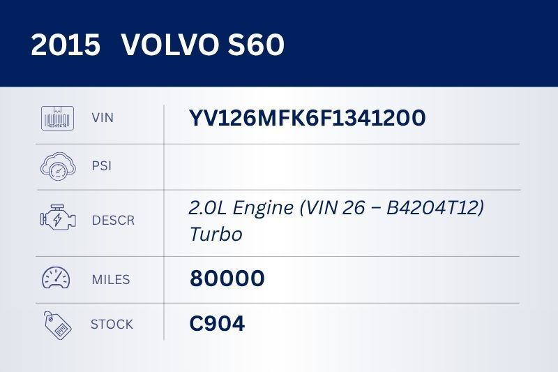 VOLVO XC60 15 2.0L, VIN 26 (4th and 5th digit, B4204T12, turbo)