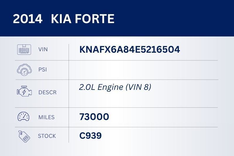Engine 2.0L VIN 8 8th Digit 73,000 Miles 2014-2016 KIA FORTE OEM #44985