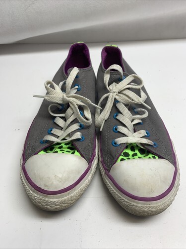 Converse Chuck Taylor Low Gray Neon Green Purple Blue Double Tongue Size 5