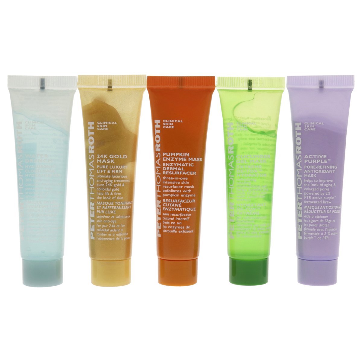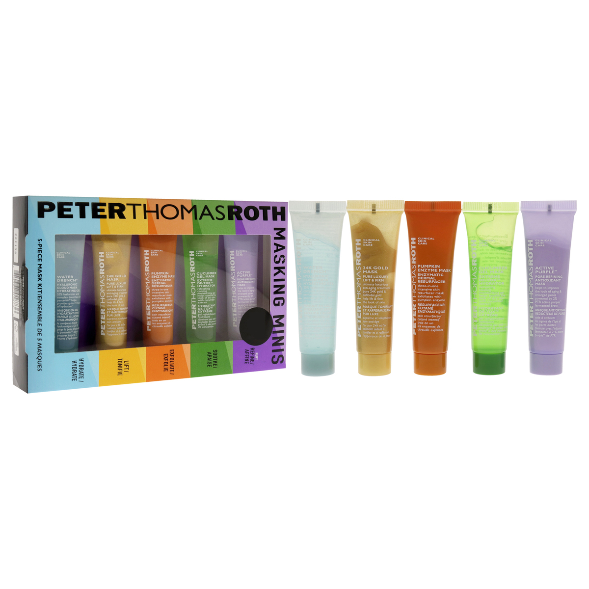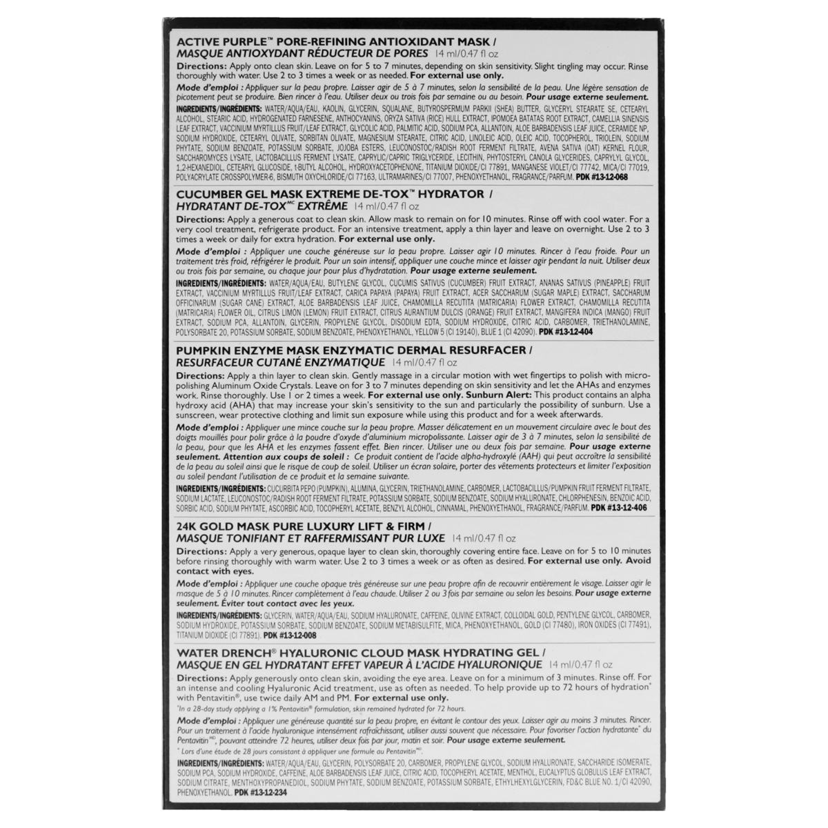 This 5-piece mask kit has all your must-haves, including the cult-favorite blue marine algae intense hydrating mask, which is only available in this kit. Youll also find pumpkin enzyme mask enzymatic dermal resurfacer, irish moor mud purifying black mask, cucumber gel mask extreme de-tox hydrator and 24k gold mask pure luxury lift and firm.
