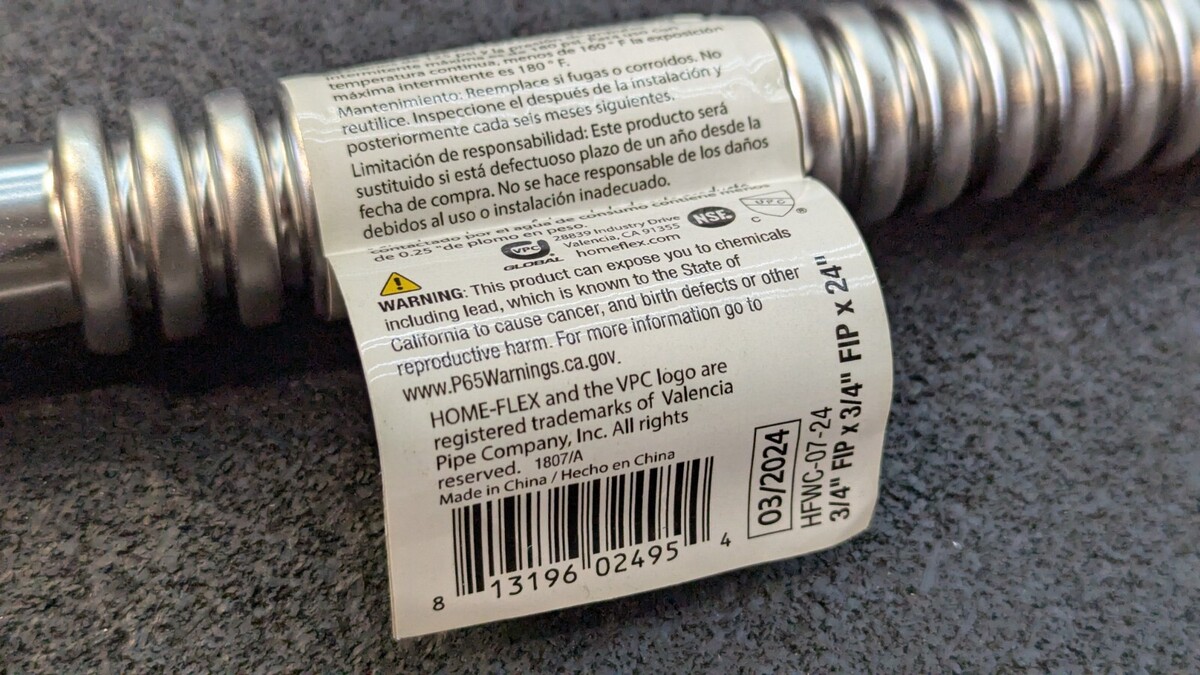 Home-Flex 24" Stainless Steel Water Heater Connector, 3/4" FIP x 3/4" FIP