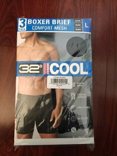 32 Degrees COOL Men's 3PK Comfort Mesh Boxer Briefs LARGE 36-38 Waist