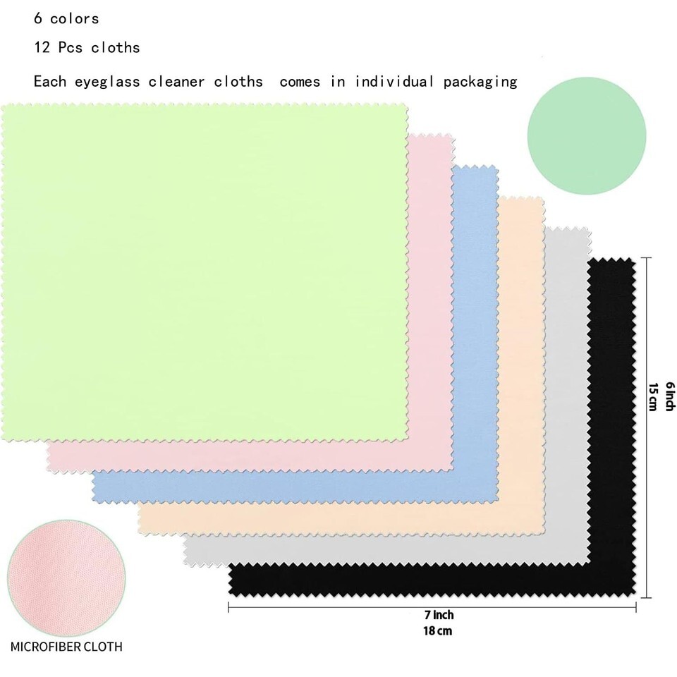 12PC Microfiber Cleaning Cloth for Glasses (6"x7") Premium Soft Eyeglass Cleaner