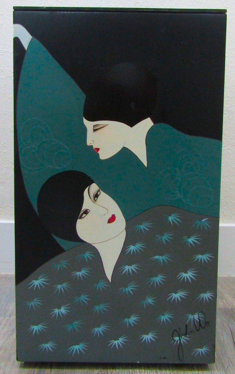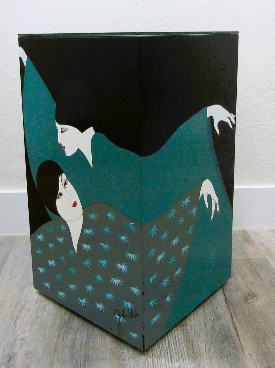 A Vintage Asian Art Deco Style Custom Painted Pedestal Or Side Table By John Wo Signed