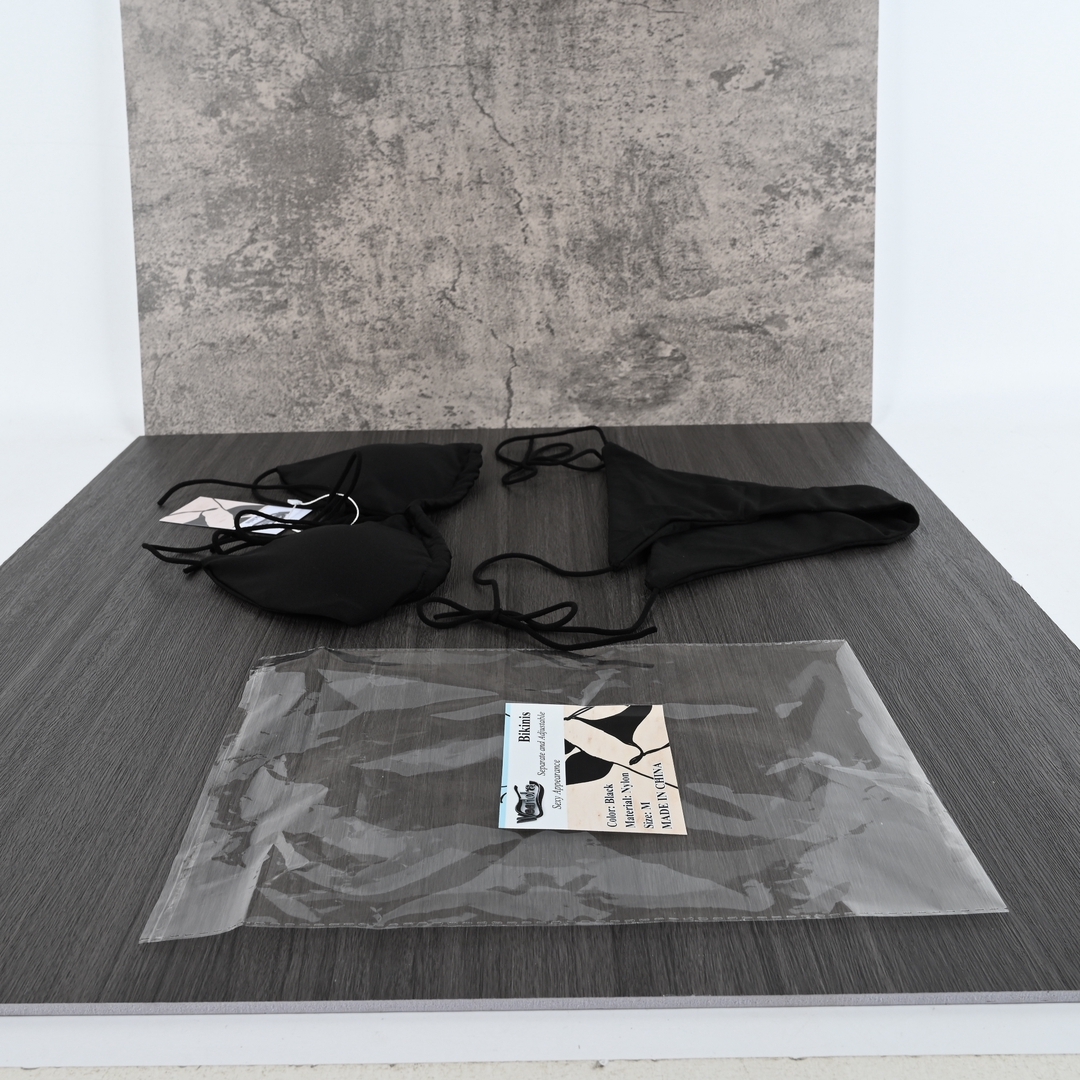 Look and feel your best at the beach or pool with this stylish black bikini set, featuring padded cups for a flattering silhouette. Made from soft, durable nylon, it offers a comfortable fit that stays in place during swimming or sunbathing. Perfect for vacations, summer outings, or pool parties.